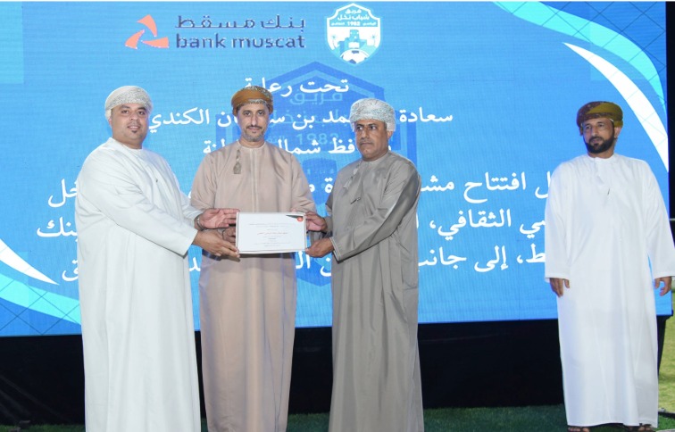 MUSCAT : Bank Muscat, the leading financial services provider in the Sultanate of Oman, recently announced the inauguration of a lighting project of Nakhal Youth Sports and Cultural Team Wilayat Nakhal, South Al Batinah Governorate. The event was held under the patronage of H.E. Sheikh Mohammed Suleiman Al Kindi, Governor of North Al Batinah, and attended by Adnan Ahmed Al Balushi, acting Regional Manager of Bank Muscat branches in Al Batinah South, along with members of the team’s management, players, and local residents. The event forms part of a series of celebrations organized by the Bank to mark the completion of projects delivered under its “Green Sports” programme, which supports community sports teams across the Sultanate.